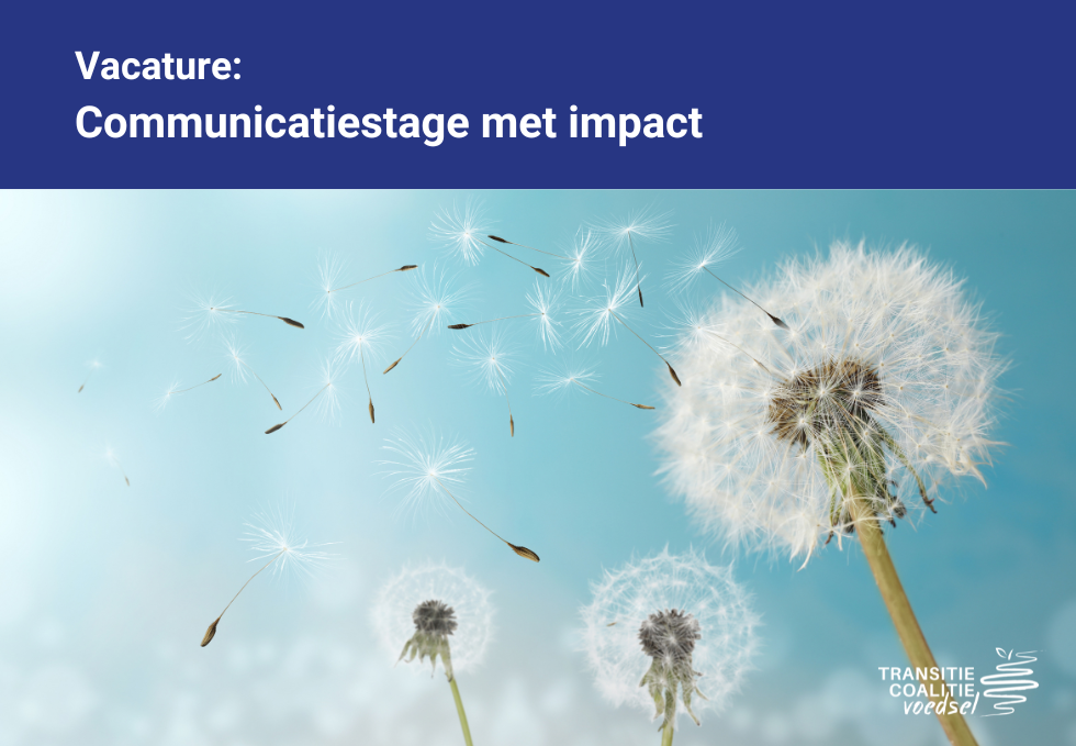 De Transitiecoalitie Voedsel (TcV) zoekt een leergierige en ondernemende stagiair(e) die ons komt versterken. Je krijgt de kans om ervaring op te doen in het hart van de eiwit- en duurzame landbouwtransitie én ruimte voor eigen communicatieonderzoek. Je ontdekt hoe communicatie een krachtige motor kan zijn voor maatschappelijke verandering.
